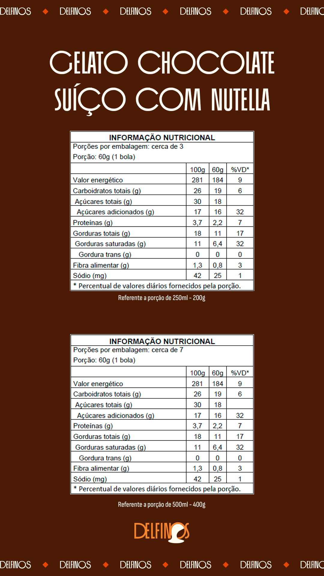 Um gelato cremoso à base de chocolate suíço, entremeado por generosos pedaços de Nutella congelada que derretem na boca.